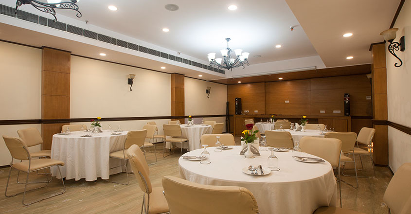 We offer 30 well appointed guest rooms including 3 Suites. All the facilities have been planned in minute detail to satisfy all the needs of the discerning traveler. Palms Café, the fine dining restaurant offers an extensive menu of International and Indian cuisine and we also provide 24 hrs in – room dining facility. Diwan Hall is an excellent venue for Conferences, Meetings or Parties of upto 75 persons. The Sky Terrace is the Rooftop function space where upto 100 persons can be entertained